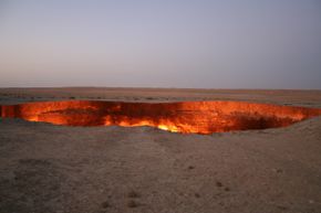 达瓦扎气体坑直径约300英尺(91米),对于任何愿意冒险前往偏远地标的旅行者来说都是一个非凡的景观[来源:旅游及休闲].从最近的道路上就能看到它的光芒,这条路要走两个小时才能穿过沙漠。向地狱般的火山口一瞥,可以看到被天然气燃烧的零星火焰舔舐着的沙子和岩石碎片。鉴于这个坑与圣经中阴间的景象相似,当地人给它起了个恰当的绰号“地狱之门”。有趣的是,这个炽热的陨石坑并不是卡拉库姆沙漠中唯一由钻井引起的异常;该地区另外两个坍塌的洞穴中含有冒泡的泥浆和水。