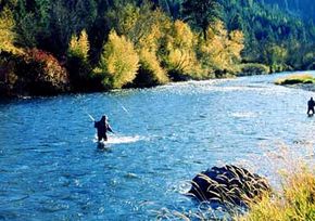 春天和夏天是伟大的时代对虹鳟鱼类或鳟鱼Grande过来,Minam, Wallowa, Imnaha河流。