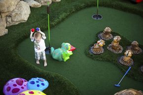 在Par-King在芝加哥郊区的迷你高尔夫球场,你不会发现任何悲伤的旋转风车。相反,你可以把球放在传送带上,它会把球带到一个工作的微型模型的顶部过山车由750块独立的木头建成。在环游世界在纽约乔治湖的迷你高尔夫球场,每个洞都描绘了一个不同的国家,包括埃及的巨大金字塔障碍和一个棘手的“铁幕”挡住了俄罗斯的洞。