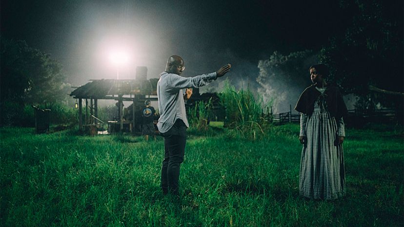 执行制片人、作家和导演巴里·詹金斯指导埃弗拉Mbedu科拉兰德尔在夜景。