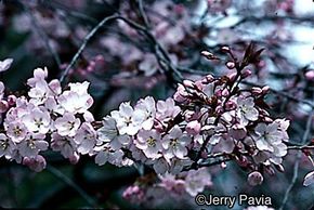 萨金特樱桃树的耐旱观赏樱桃,和一个最大的和最美丽的。丰富的春天花是深粉色和大多数double-flowering樱桃出现之前一个星期左右。黑色水果,受鸟类,在夏天出现。树上有抛光,茶色树皮和深绿色的落叶,在秋天变红了。