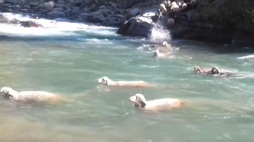 虽然绵羊喜欢保持羊毛干燥,但它们是相当好的游泳者。如果他们必须淋湿,他们会寻找一个浅的地方渡过小溪。它们还以游泳技能在洪水中生存而闻名。
