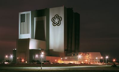 车辆装配大楼,小矮人甚至周围高大的树木,是美国国家航空航天局使其最大的火箭。接下来,退后一步,看到的第一个成功的火箭。